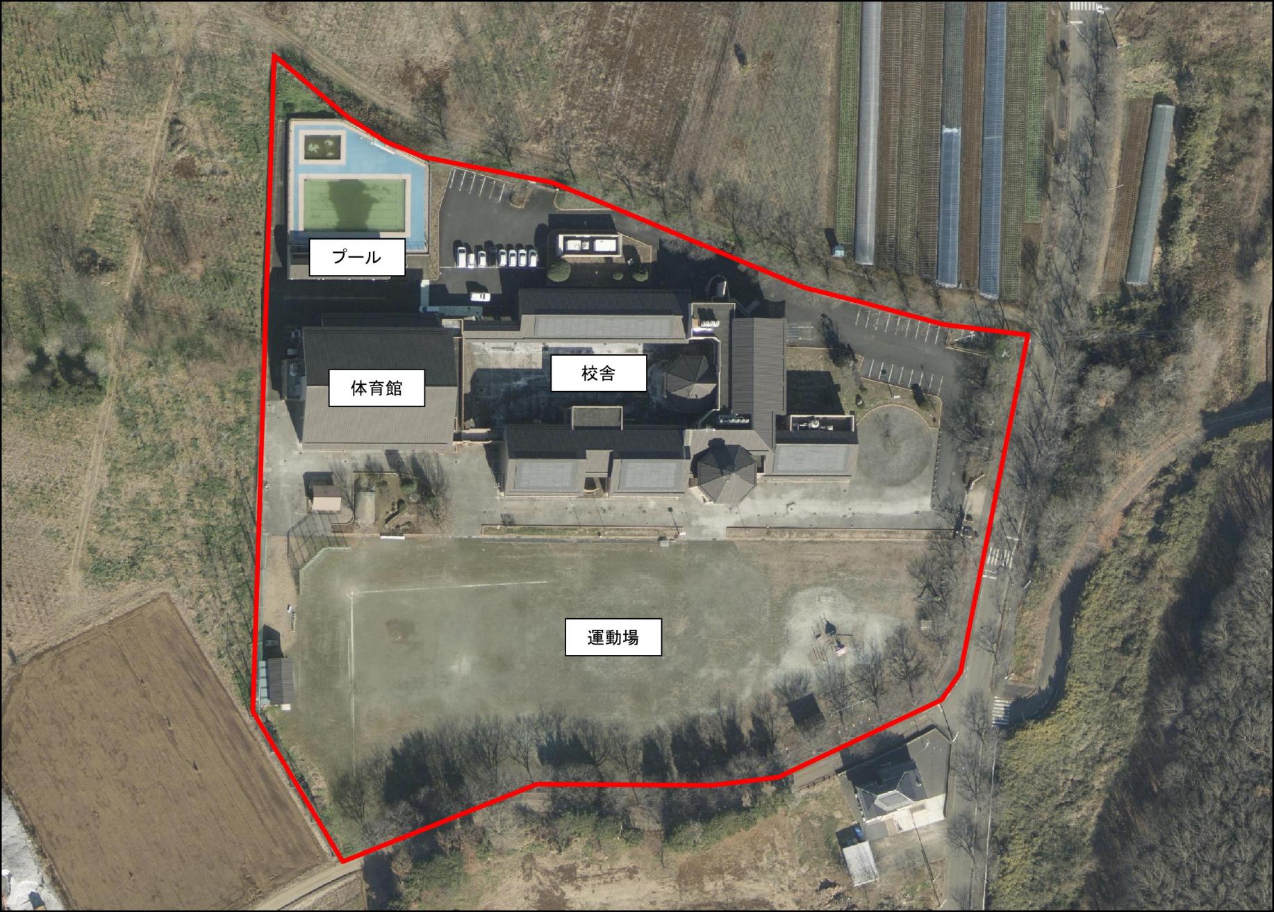 校舎、体育館、プール、屋外トイレ、屋外体育倉庫、グラウンド |